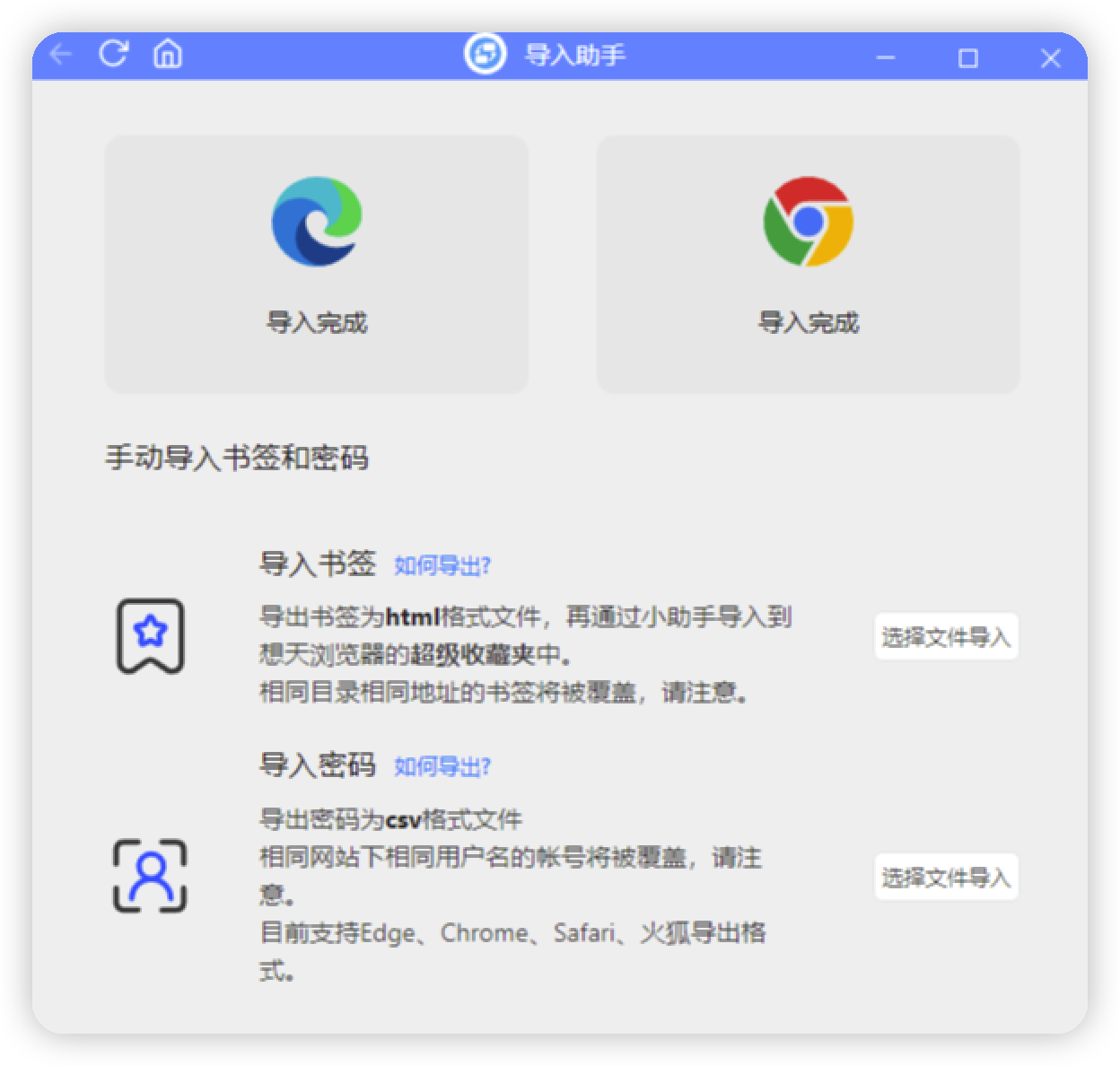 改进导入助手,增加对edge、chrome导入的支持
