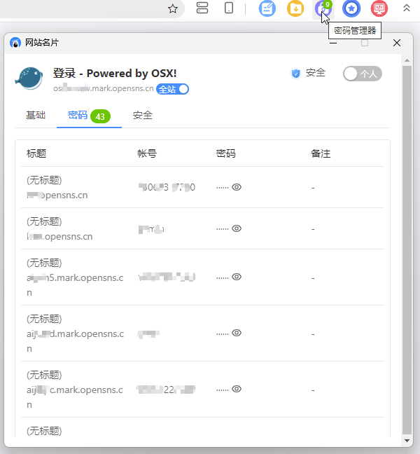 目前我们支持对个人密码进行便捷管理。