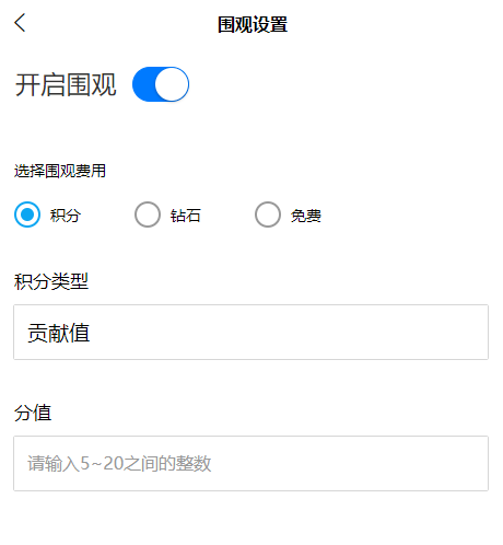 题主采纳最佳回答的同时,可配置是否开启围观以及设置围观的费用。