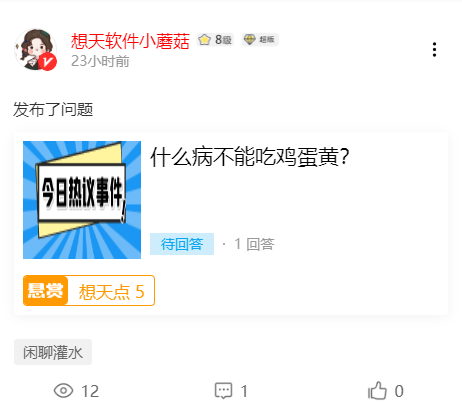 根据需求选择悬赏的积分奖励,发布后如下图: