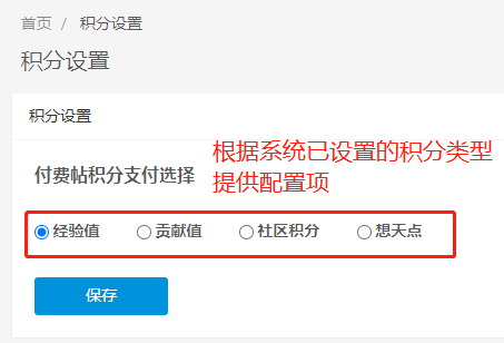 4.管理后台支持设置用户发布时可选择付费的积分类型。