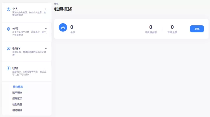 8. 修复了账单和提现页面缺少空状态的问题。