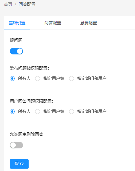 管理后台可配置问题的发布和回答权限,支持配置题主删除回答权限。