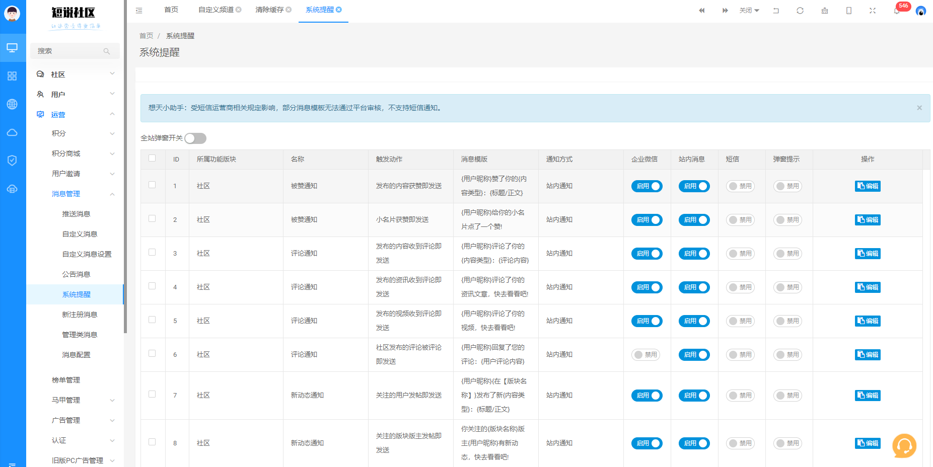消息推送:通过社区的新动态消息推送,让用户快速收到社区的动态信息,参与到互动中。