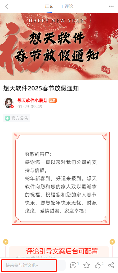 用户在进入帖子详情,如果有引导用户评论的提示语,也可能加大他评论的可能性。
