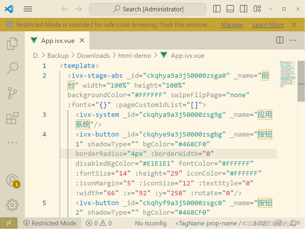 下面是由IVX生成的代码,这就是我刚刚画的那个界面。很不错吧,完美应用VUE。