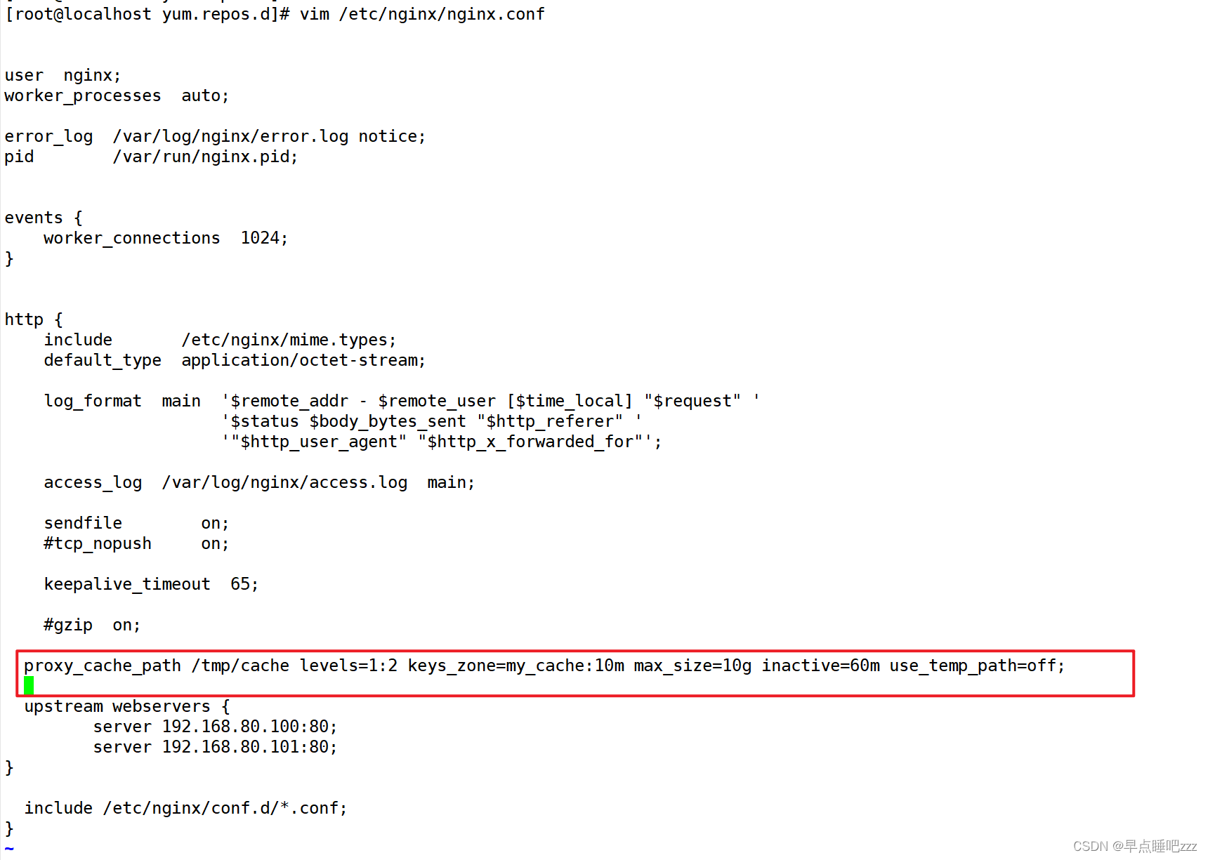 ps如果报错,31行使用这个:proxy_cache_path /tmp/cache levels=1:2 keys_zone=my_cache:10m max_size=10g inactive=60m use_temp_path=off;