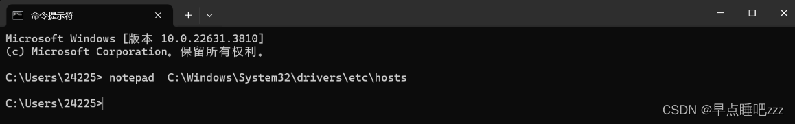打开cmd后输入: notepad C:\Windows\System32\drivers\etc\hosts