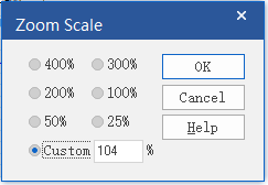 在view菜单下,Zoom->Scale,然后在Custom这里手动设置缩放比例: