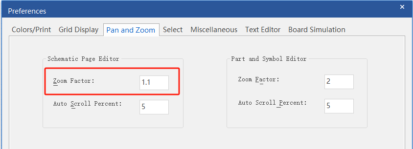 OrCAD的默认倍数是2,即滚轮动一下就放大2倍或者缩小1/2,有两个方法来调整这个倍数。