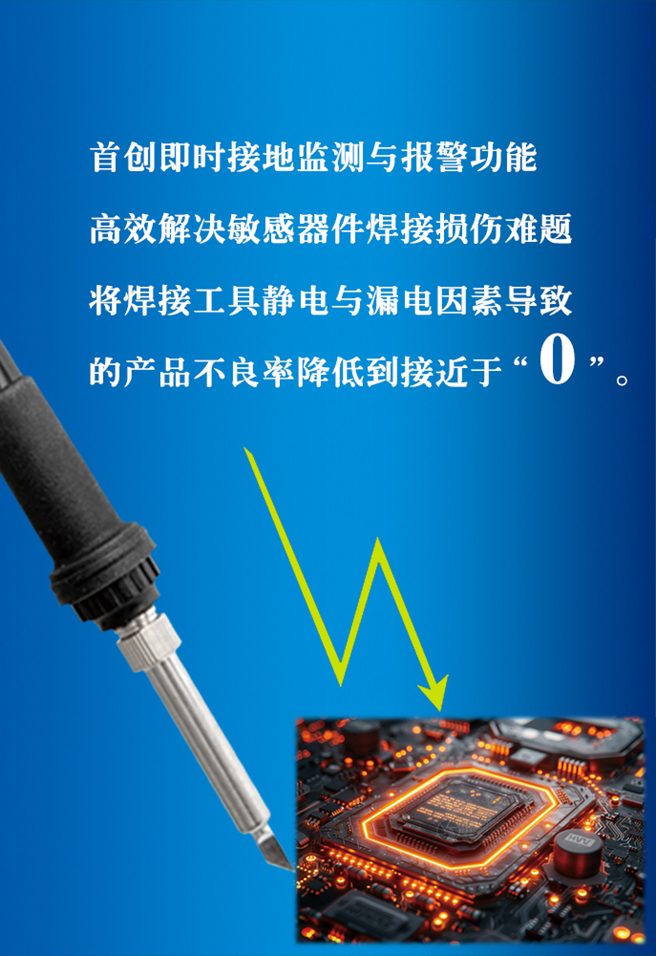 即时接地监测报警:焊接精密芯片或静电敏感元件时,接地异常即时提醒,从根源上避免静电击穿或漏电损伤,保护昂贵器件。
