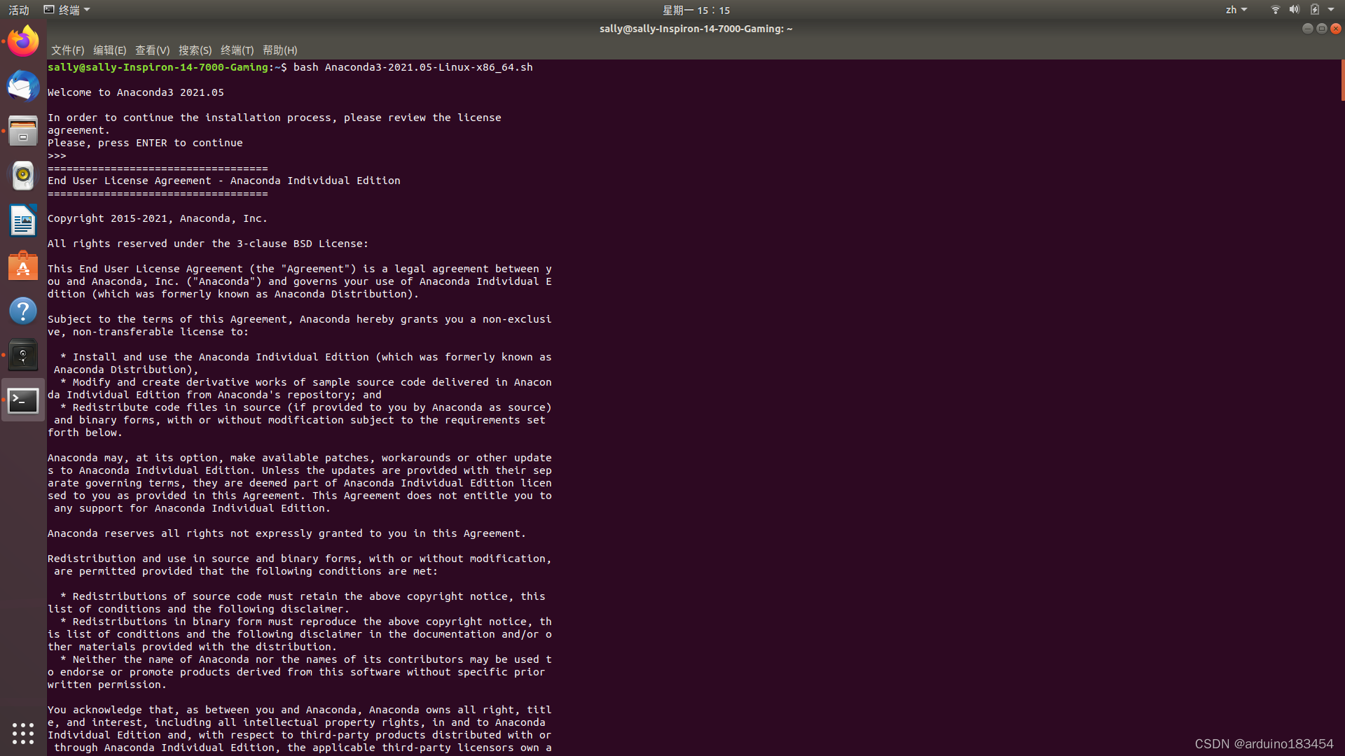 输入 bash Anaconda3-2021.05-Linux-x86 64.sh