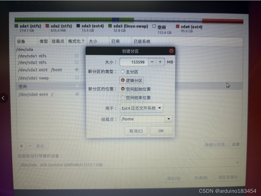 2逻辑分区: home:250G swap:32G