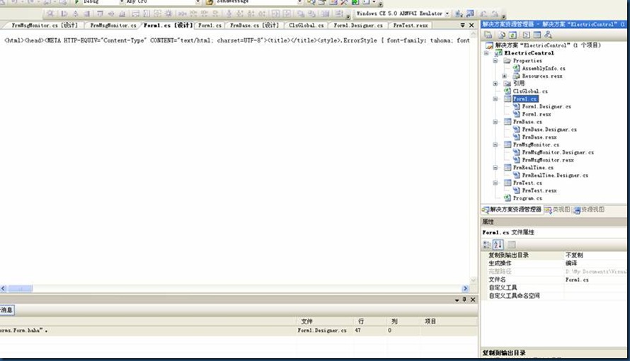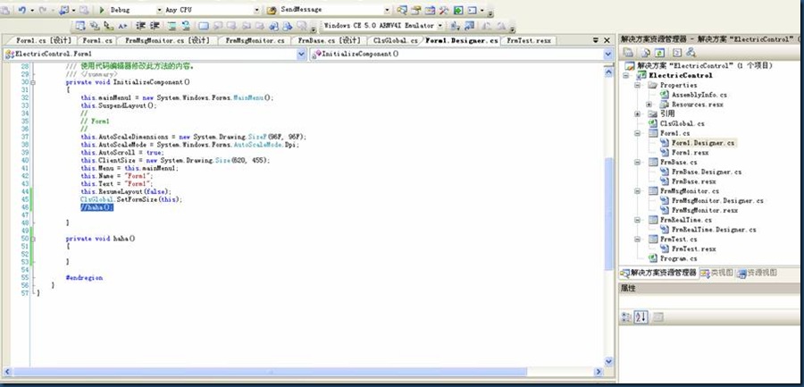 C#(Vs2005 、wince)统一界面宽高,以及出现乱码的解决方案(失败,这个方法不行,因为InitializeComponent()会自动编辑把手动加的代码删掉)
