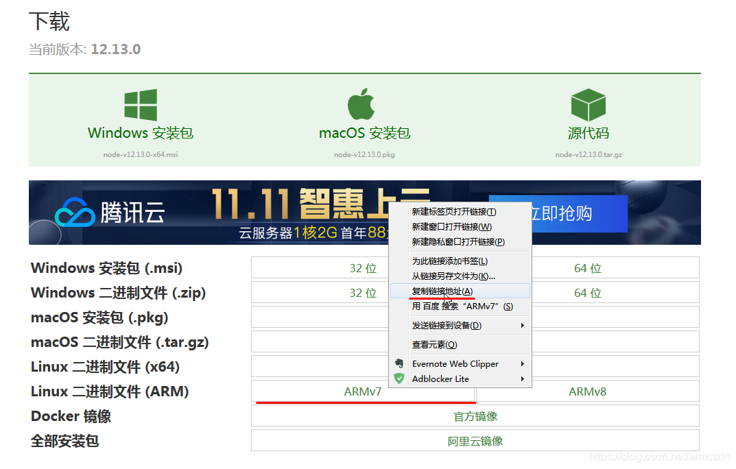 wget https://npm.taobao.org/mirrors/node/v12.13.0/node-v12.13.0-linux-armv7l.tar.xz