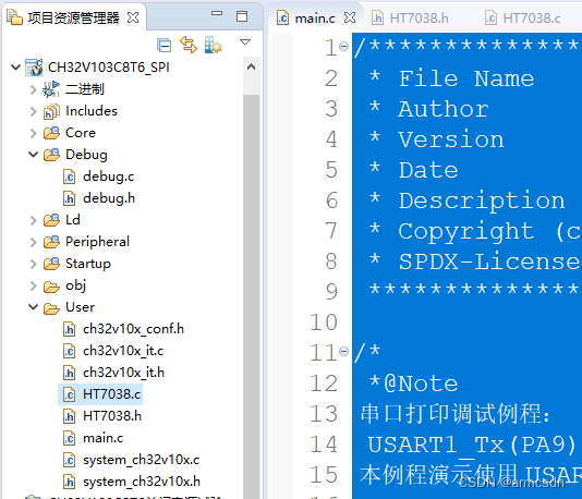使用CH32V103C8T6的SPI与ht7038通讯。