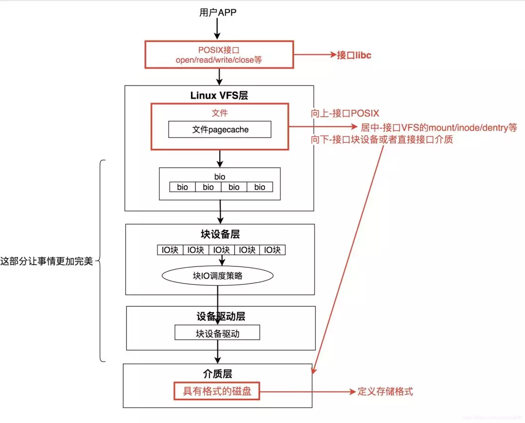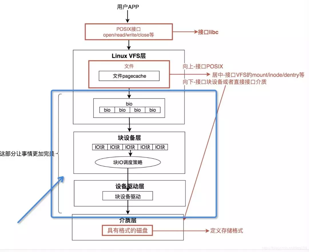 回过头来看Linux文件系统IO的纵向视图:
