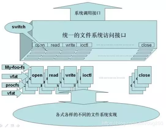 注意上图最下面的那个椭圆,如果要实现一个文件系统,这个椭圆里的东西是关键,它完成了穿针引线的大部分工作。