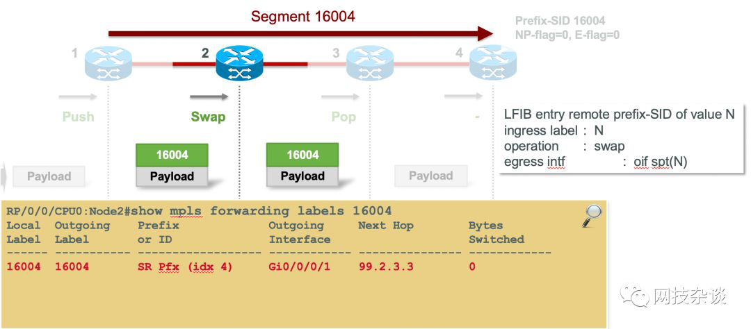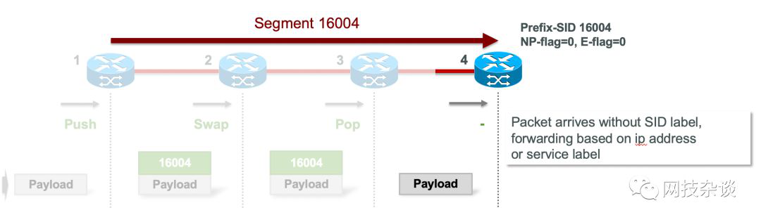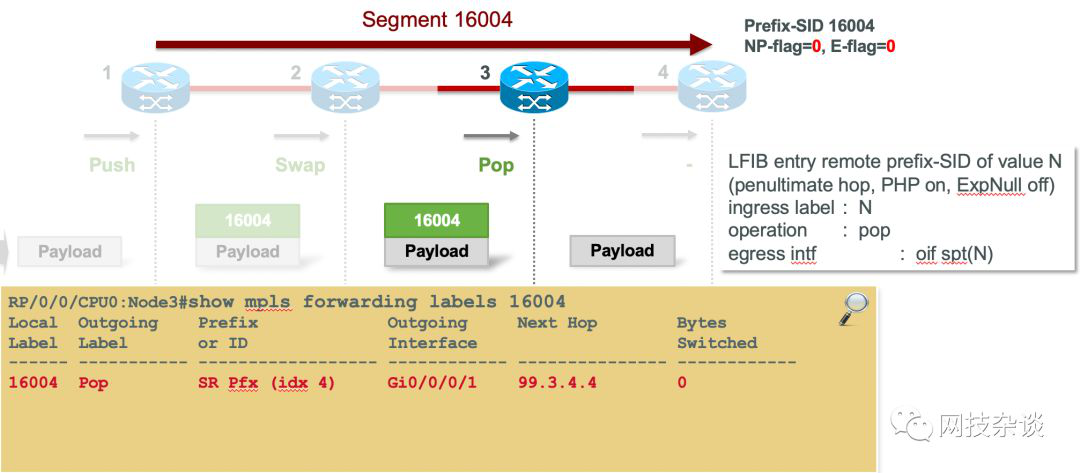 在Node-4上,它收到的包就不再带有SID Lable