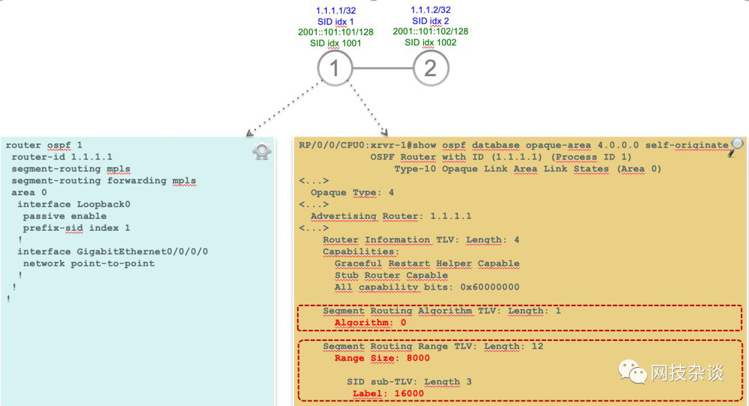 - Node-2通告前缀1.1.1.2/32,prefix-SID:16002