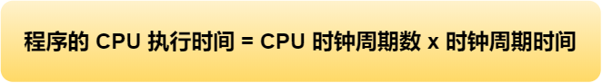 程序执行的时候,耗费的 CPU 时间少就说明程序是快的,对于程序的 CPU 执行时间,我们可以拆解成 CPU 时钟周期数(CPU Cycles)和时钟周期时间(Clock Cycle Time)的乘积。