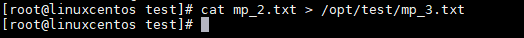 使用命令:cat mp_2.txt > /opt/test/mp_3.txt