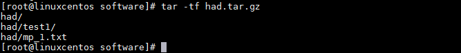 使用命令: tar -tf had.tar.gz