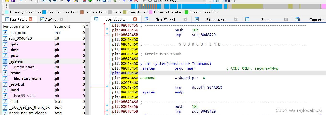 新手小白建议用ropgadget来寻找,因为直接从ida中看对新手小白容易看错地址(下面还有一个地址)