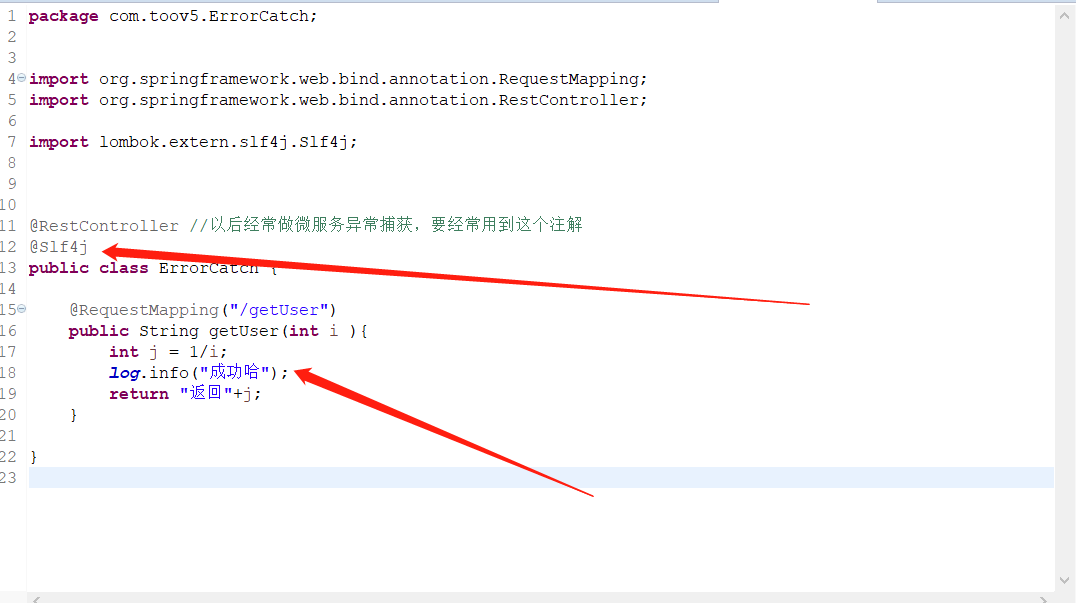 @RestController //以后经常做微服务异常捕获,要经常用到这个注解