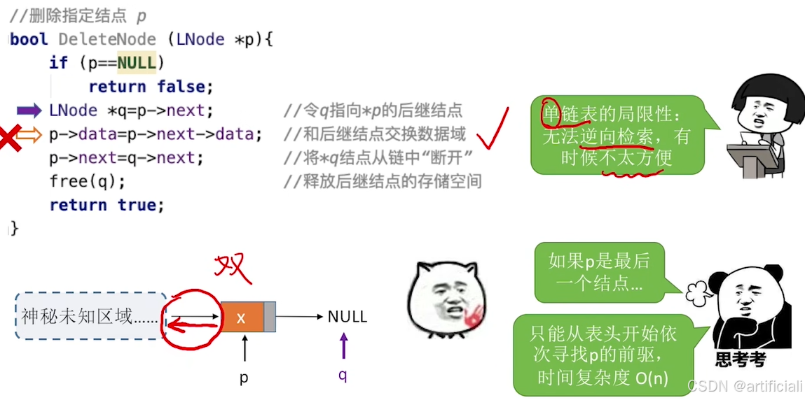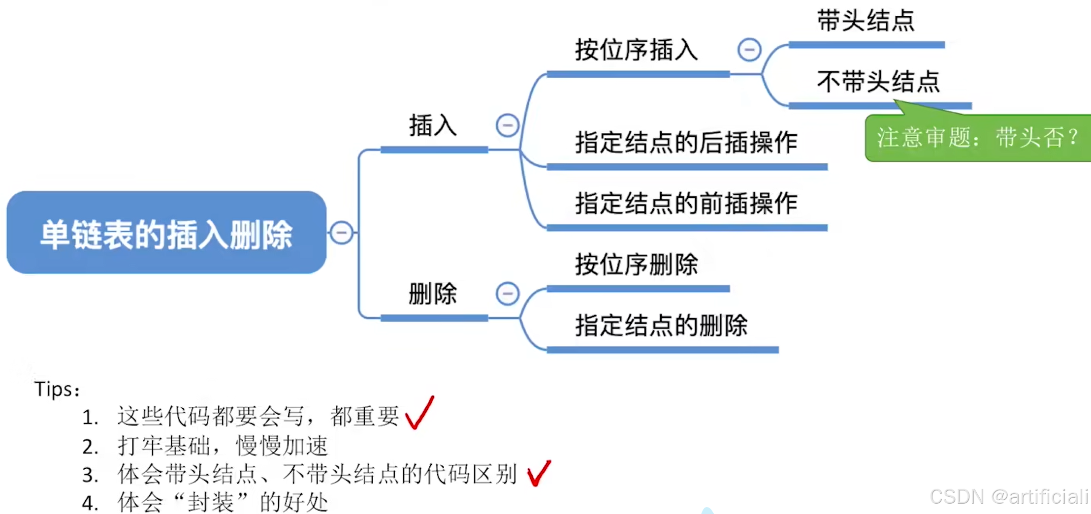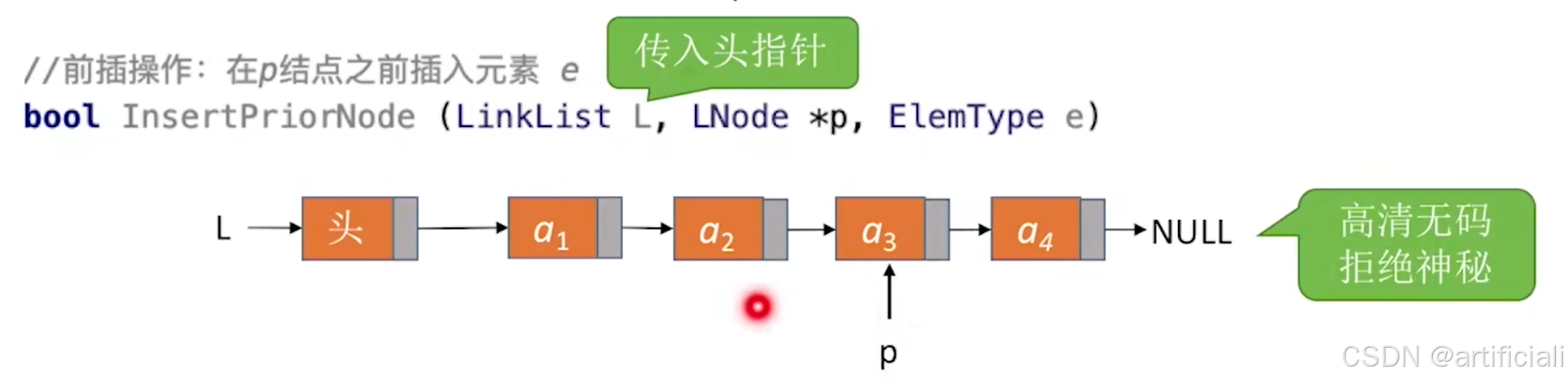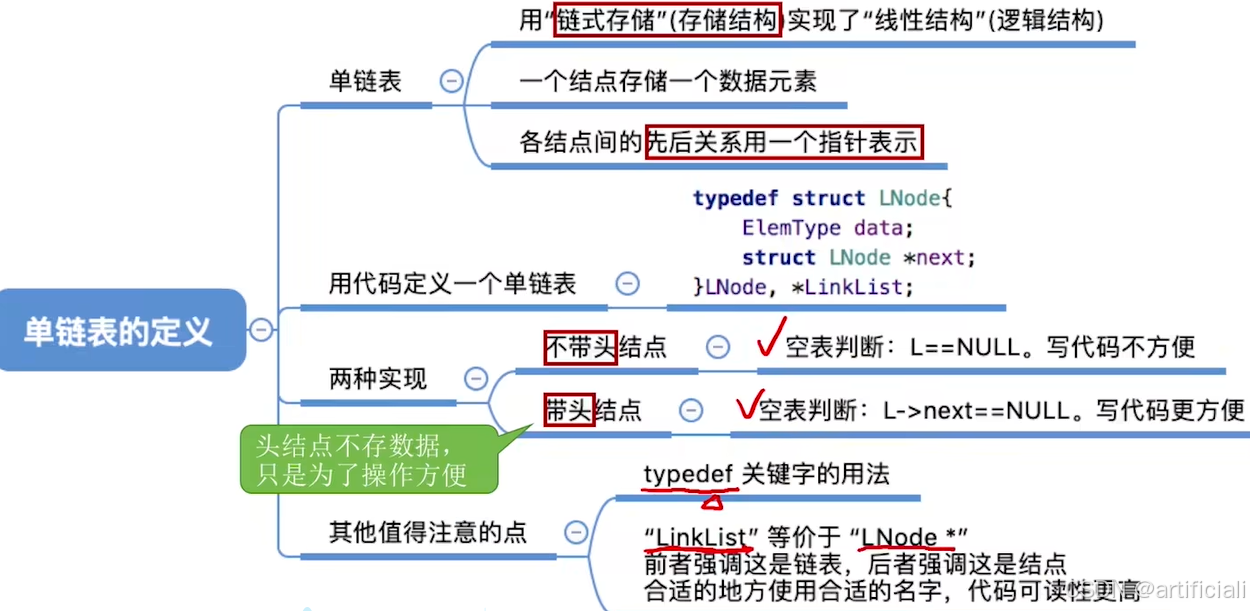 - 链式存储的固有特点:元素之间的关系采用这些元素所在的节点的“指针”信息表示(插、删不需要移动节点)。