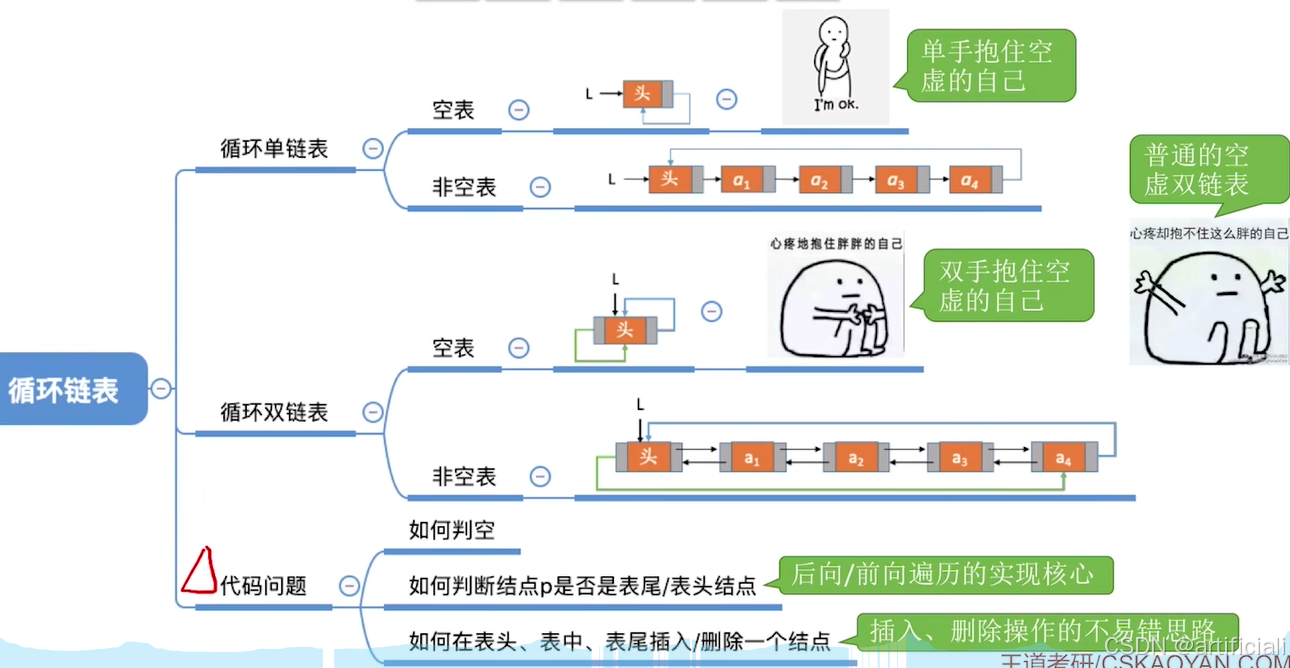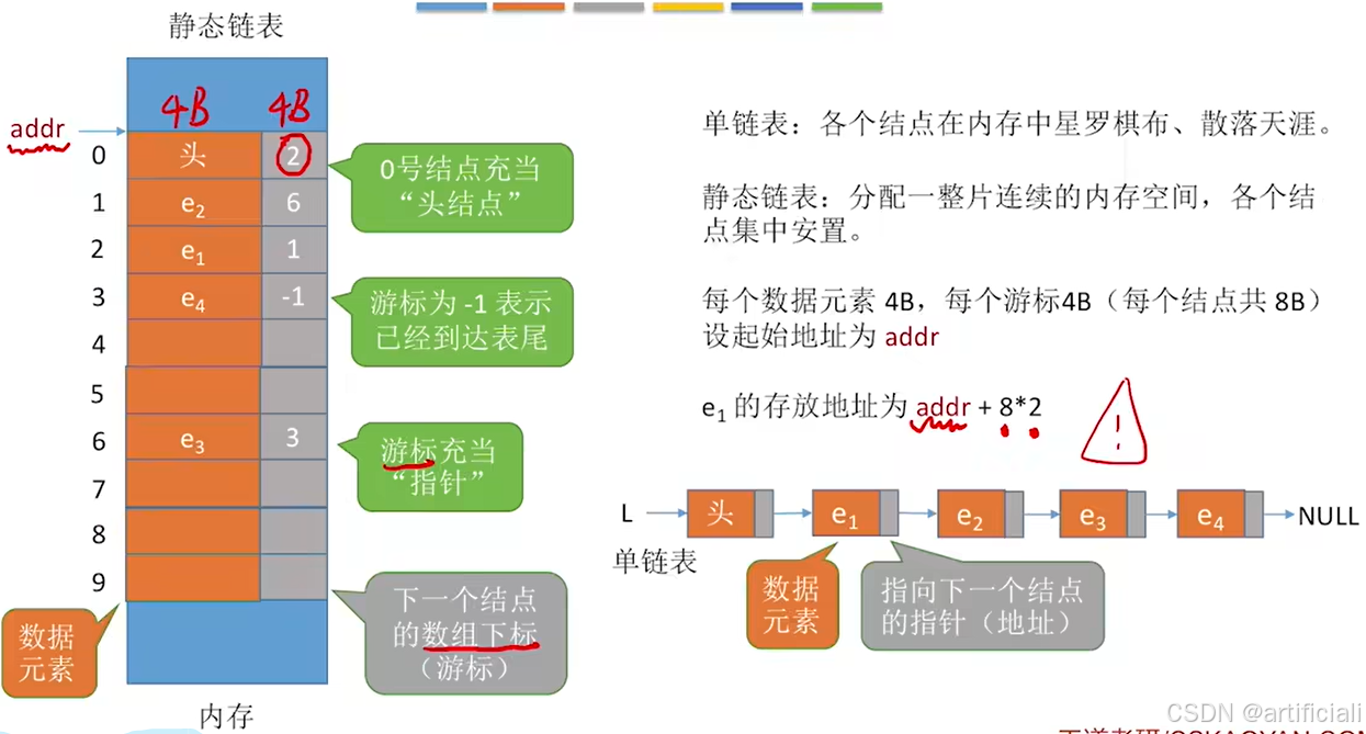 | 销毁方式 | 静态数组系统自动回收;动态数组需要手动释放内存(free) | 需要手动释放每个节点的内存空间 |
