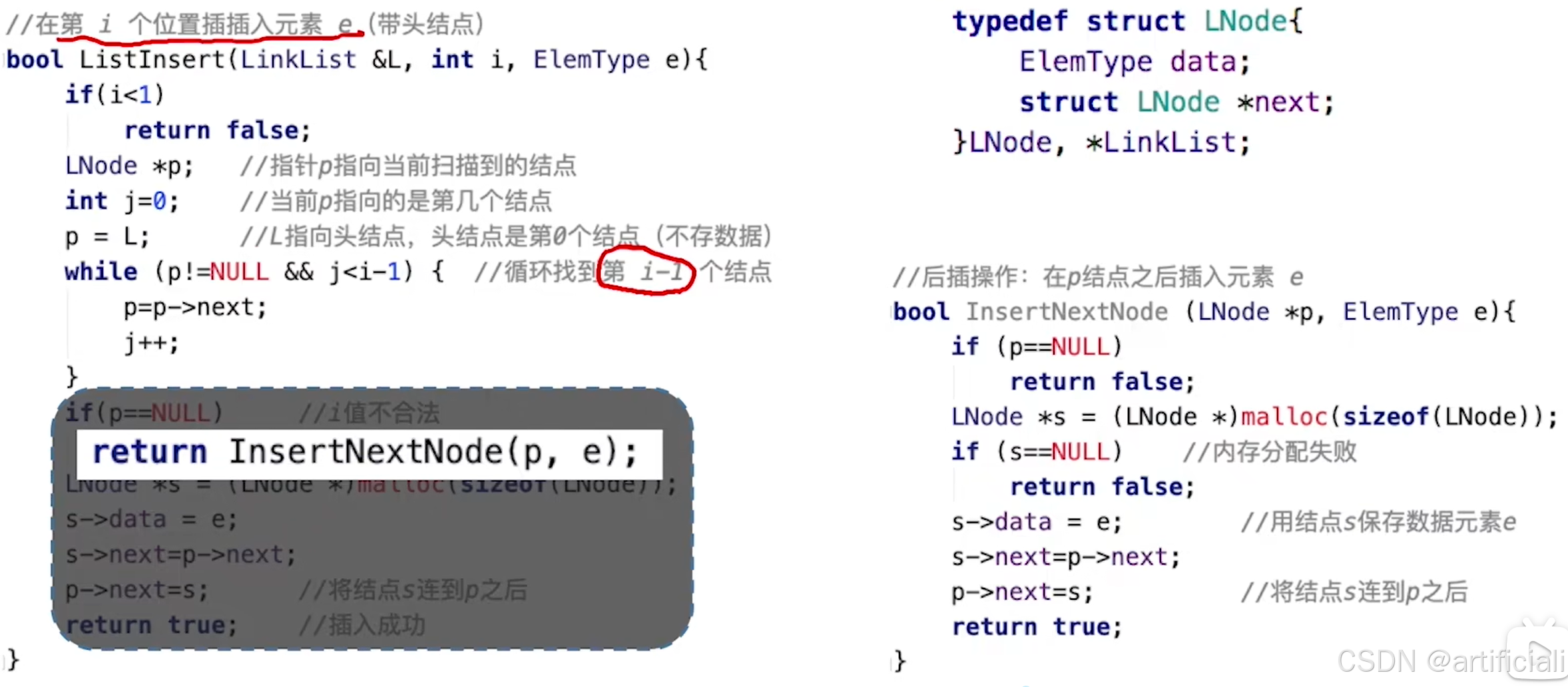 for (int i = 0; i < index - 1; i++) {//找到插入位置的前一个节点