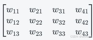w _ { 4 } ^ { 1 } = \left[w_{41} , w_{42} , w_{43}\right] ^ { T }$