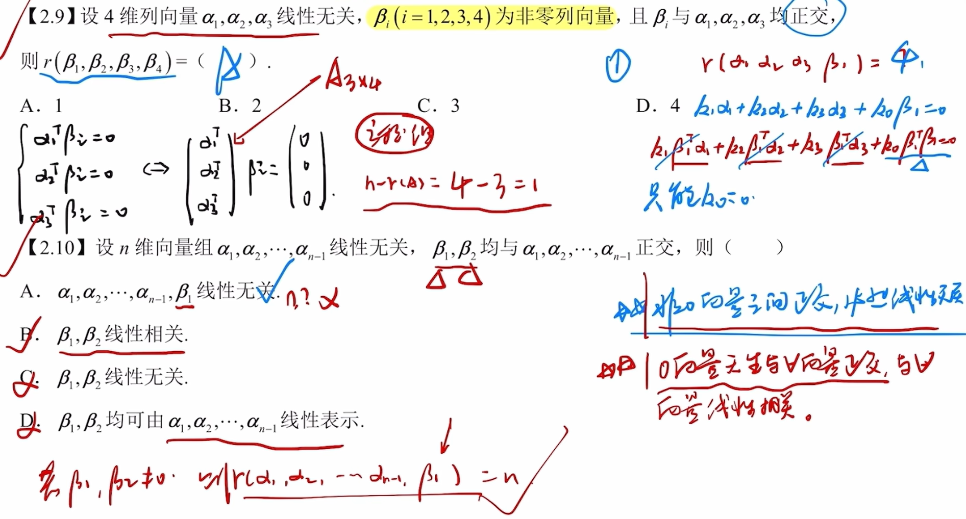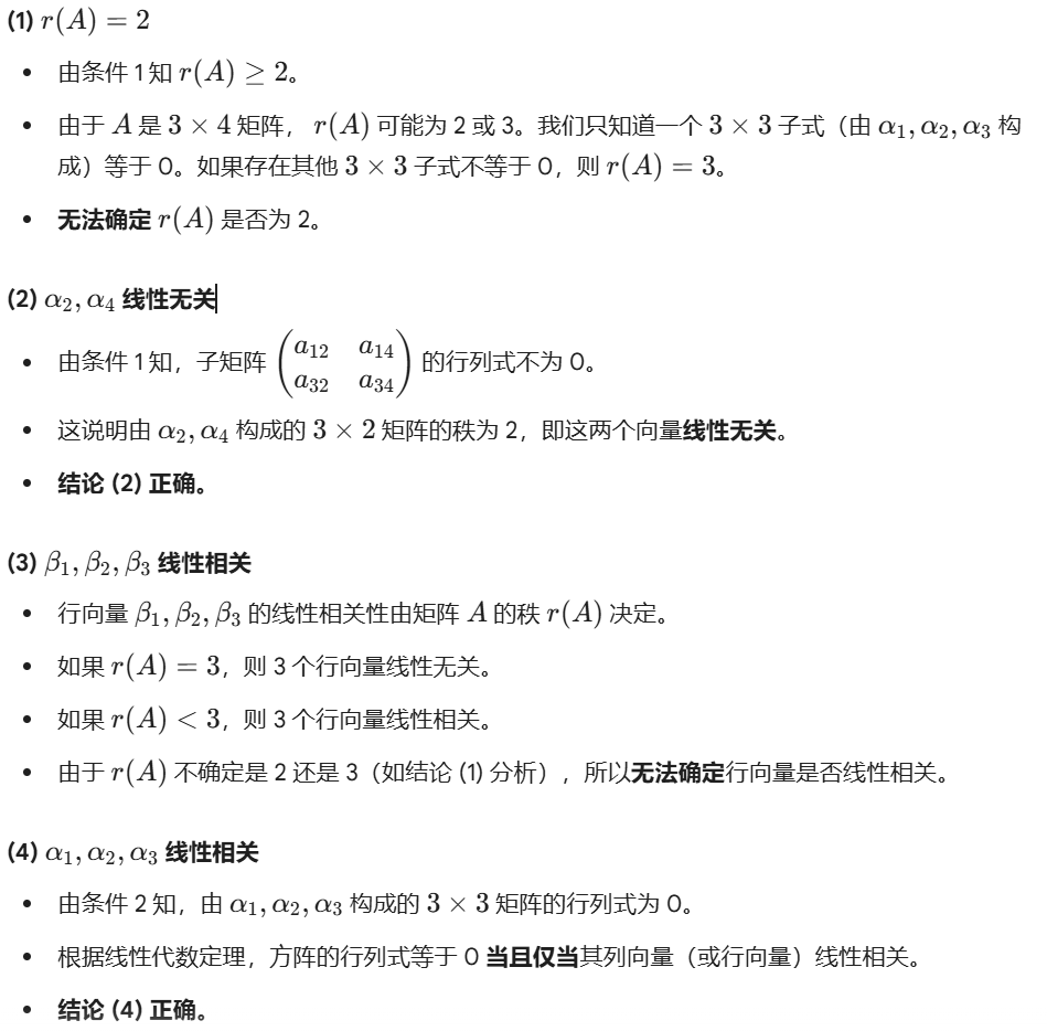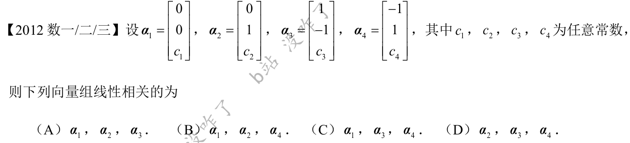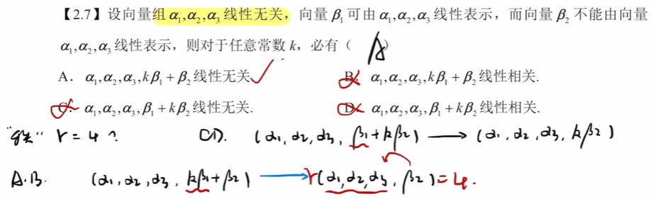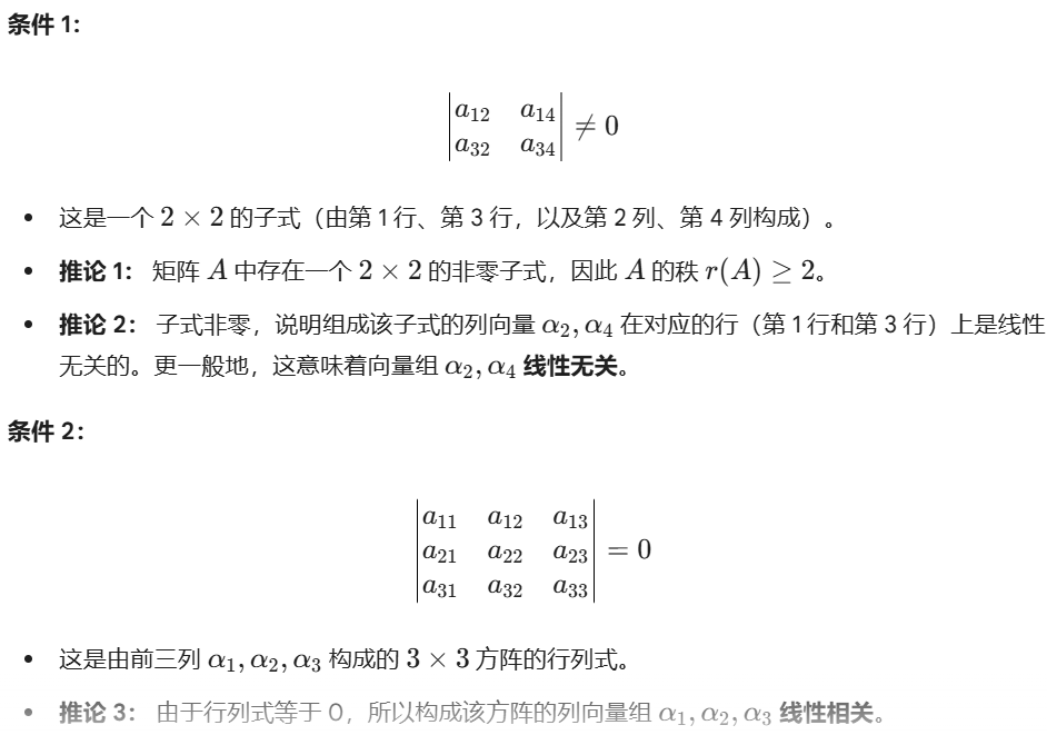 解释: 如果一个向量组的部分(子集)已经线性相关了,意味着子集中的某个向量可以被子集中的其他向量表示。将这个子集放入一个更大的整体(超集)后,这个表示关系依然成立,所以整个超集当然也是线性相关的。
