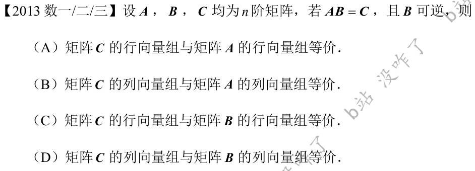 解释: 如果一个向量组的整体(超集)是线性无关的,这意味着整体中的任何一个向量都不能被其他向量线性表示。那么取它的任何部分(子集),子集中的向量之间自然也不可能存在线性表示关系,所以这个子集也是线性无关的。