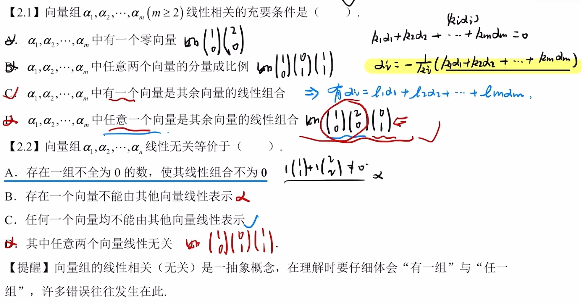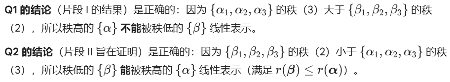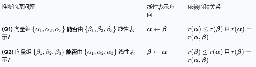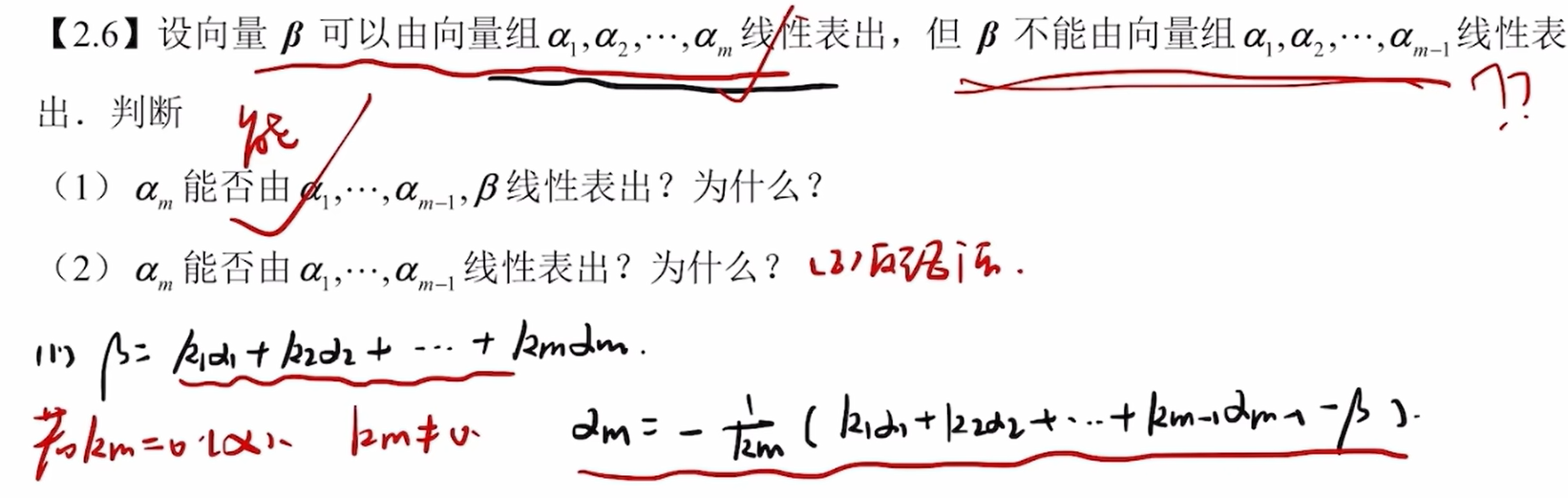 - 多出来的向量可以由少的向量组线性表示,即这些多出来的向量是冗余的,可以表示为其他向量的线性组合。那么这个多的向量组一定是线性相关的。