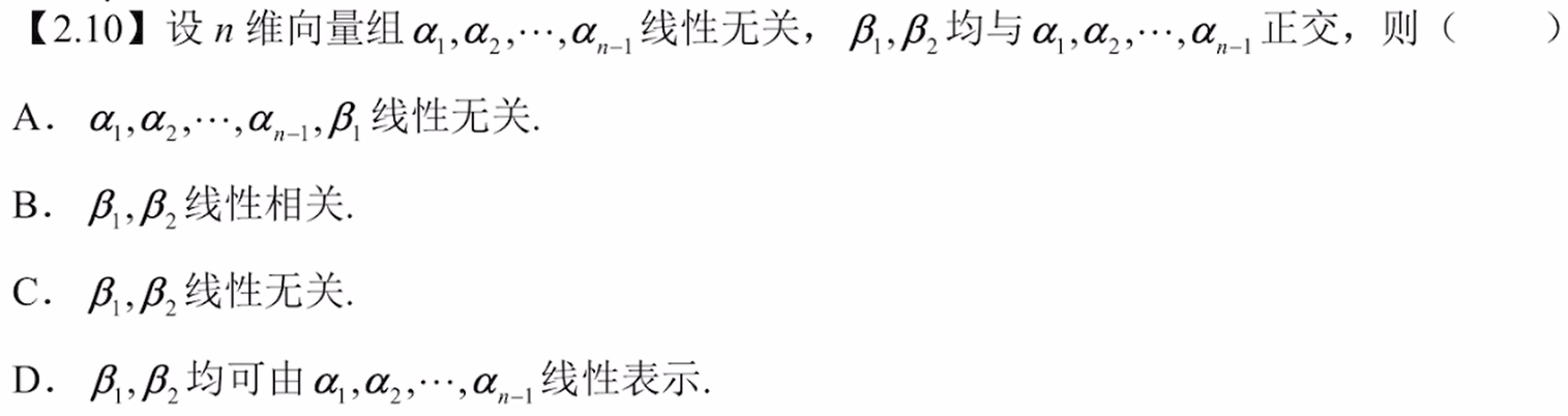 线性无关 (Linearly Independent): 如果向量组中的任何一个向量都不能被组内其他向量线性表示,那么这个向量组是线性无关的。