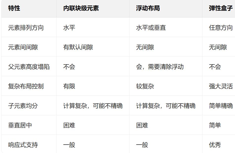 在前端开发的世界里,布局一直是核心挑战之一。从早期的表格布局,到后来的内联块和浮动布局,再到如今的 Flexbox 和 Grid,每一种布局技术都代表了时代的进步。本文将深入探讨内联块级元素、浮动布局和弹性盒子这三种重要技术,分析它们的优缺点以及使用场景。