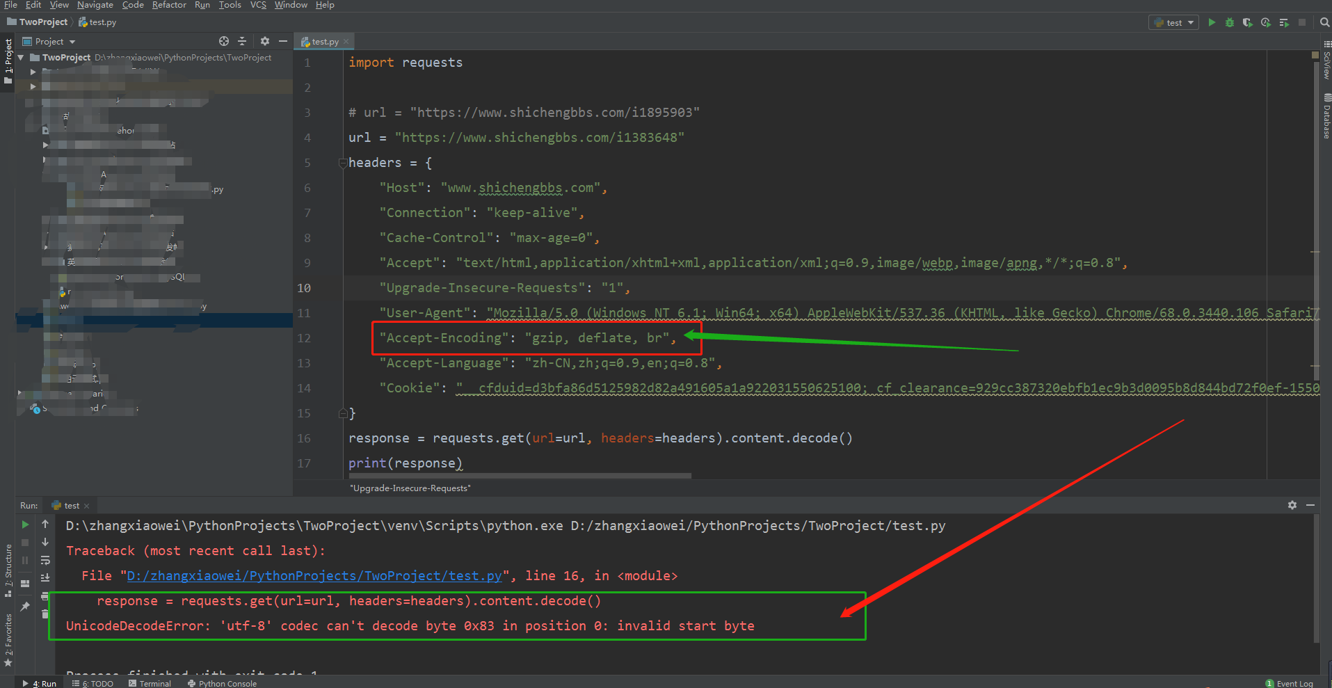 当出现这种错误,并确定编码格式为utf-8的时候,把headers中的如下注释掉就OK