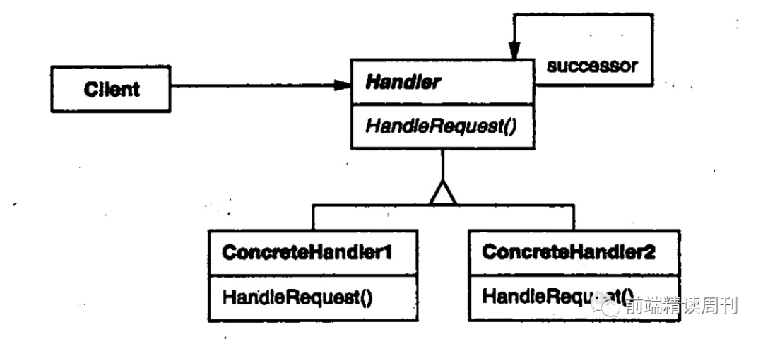 ConcreteHandler 是具体 Handler 的实现,他们都需要继承 Handler 以具备相同的 HandleRequest 方法,这样每一个处理中间件就都拥有了处理能力,使得这些对象连成的链条可以对请求进行传递。
