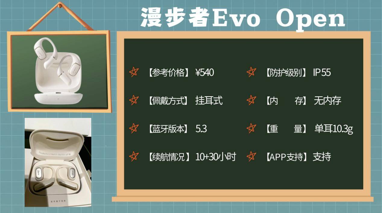 漫步者Evo Open是一款轻盈、舒适、续航出色的开放式耳机,佩戴几乎无感,抗菌材质和防水设计让你运动或日常使用都轻松无负担。虽然它不适合高强度运动,但在散步、慢跑或通勤中,Evo Open能带来稳定、舒适的音质体验,并通过APP功能扩展更多便捷操作。