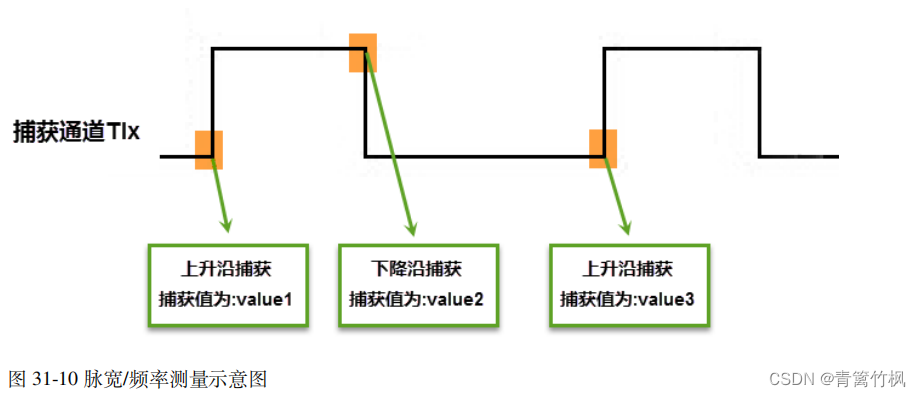 输入捕获一般用于脉冲跳变沿事件测量和PWM输入测量