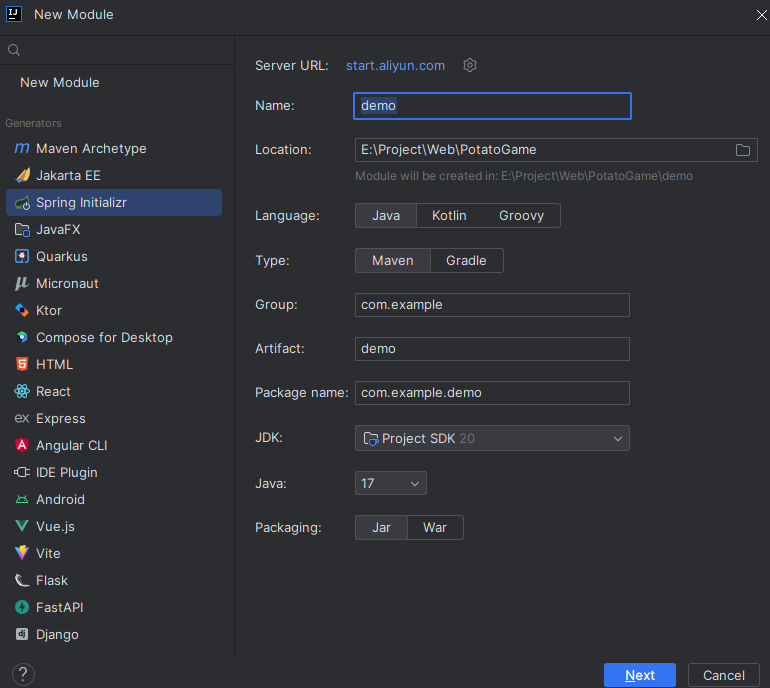 在项目中,创建一个新的Module,可以通过IDEA快速创建