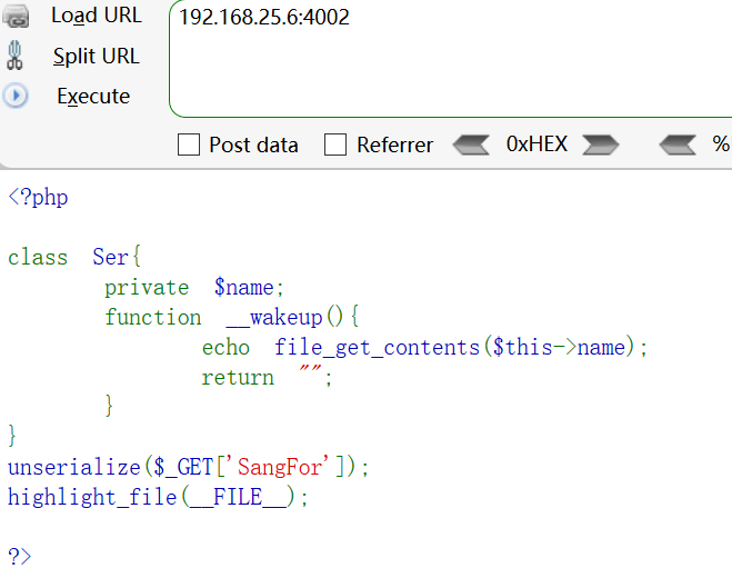 4、在__wakeup函数中存在file_get_contents()函数,并且参数为$name,可控(注意成员变量$name为私有类型)