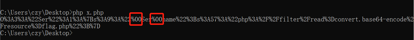 当成员变量为私有类型时,当$name被反序列化时,前后为%00。