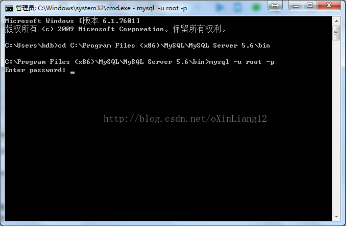 输入命令:mysql -u root -p,如下图所示,显示了Enter password:说明安装成功