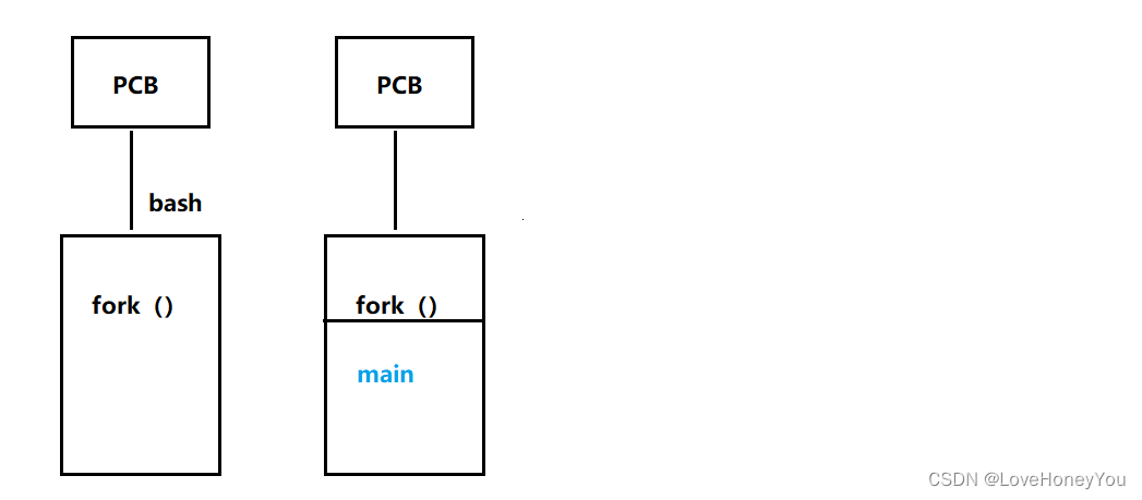 在执行./main这个可执行程序时,我们的先把bash—fork复制一份,然后再把main程序替换进去