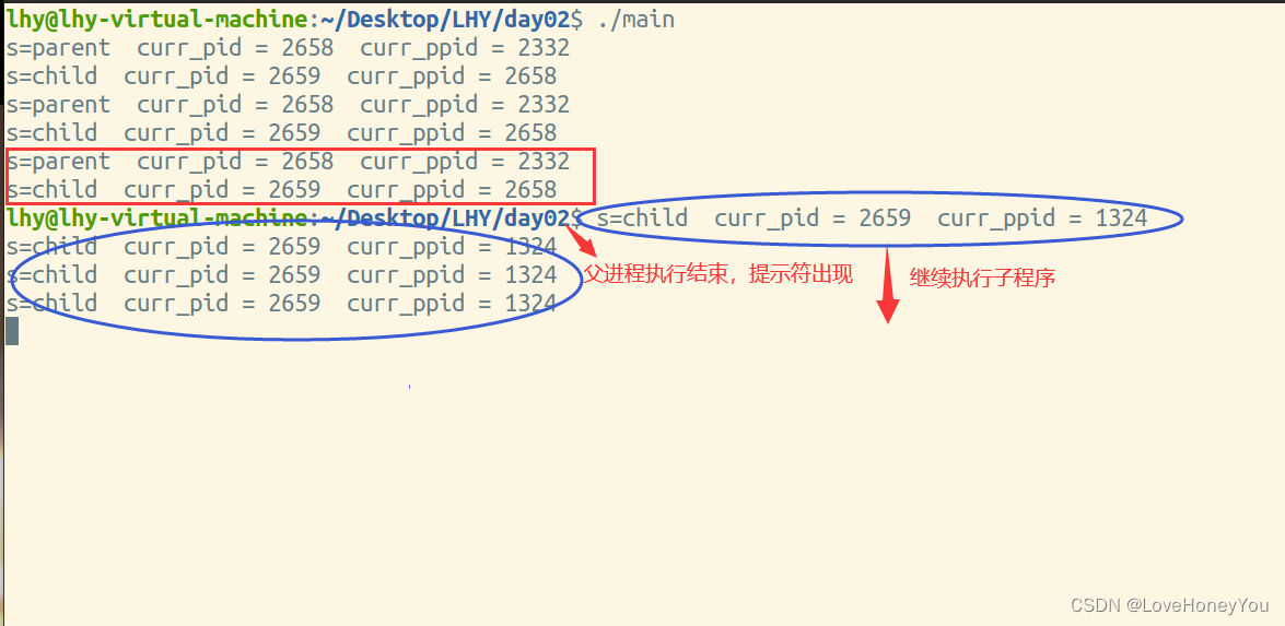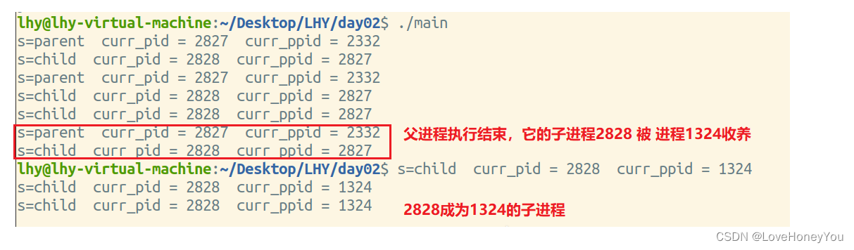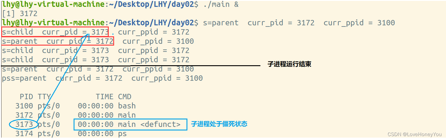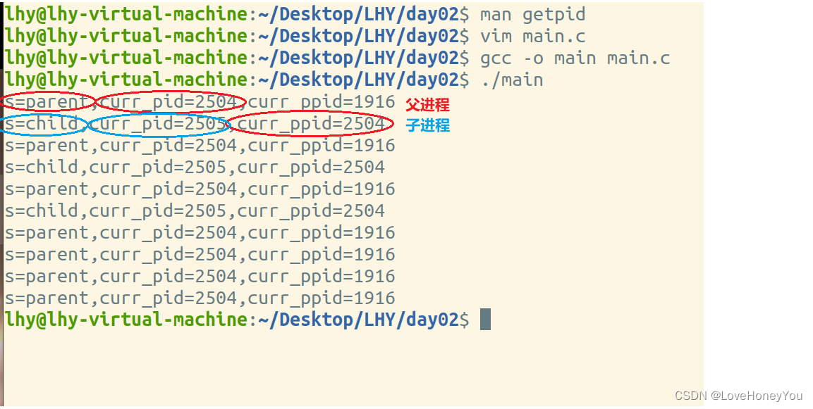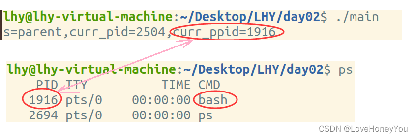 4)在下图我们可知 ./main的父进程是bash(命令解释器)