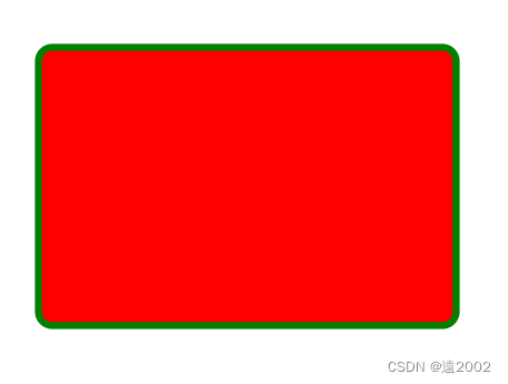 <rect x="30" y="30" width="300" height="200" fill="red" stroke="green" stroke-width="5" rx="10"></rect>