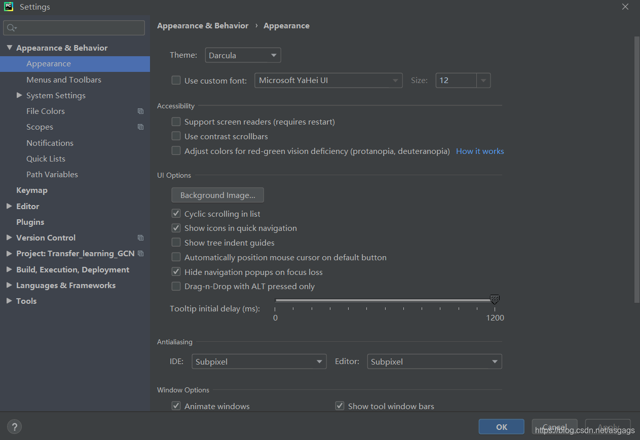 1.打开pycharm工具栏的file菜单,选择settings选项。弹出窗口: